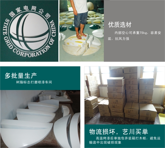 1、按國家電網VI標準將標志做成球形分塊模具。
