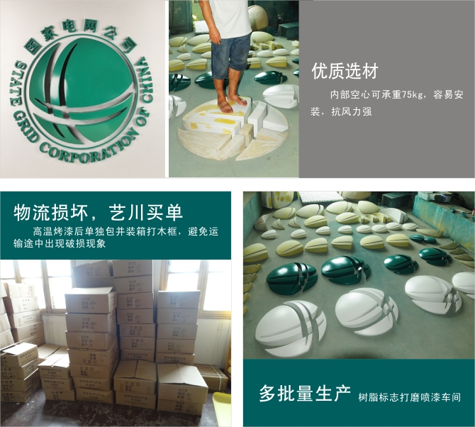 1、按國家電網VI標準將標志做成球形分塊模具。