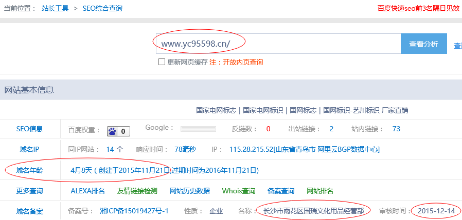 藝川標識官網域名yc95598.com的工信部備案信息截圖